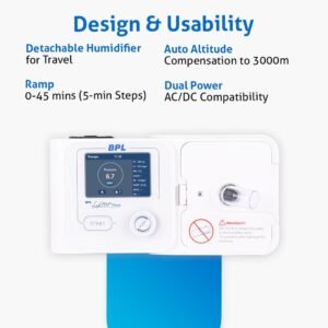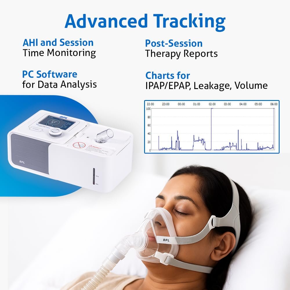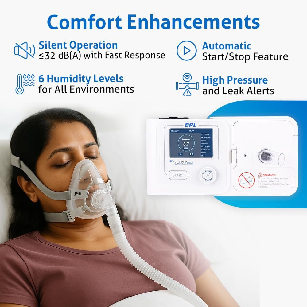 AutoRamp & SmartStart Technology: The BPL CPAP device begins therapy with a low pressure to ease you into sleep and automatically starts treatment the moment you breathe into the mask—no need to press buttons or wait.